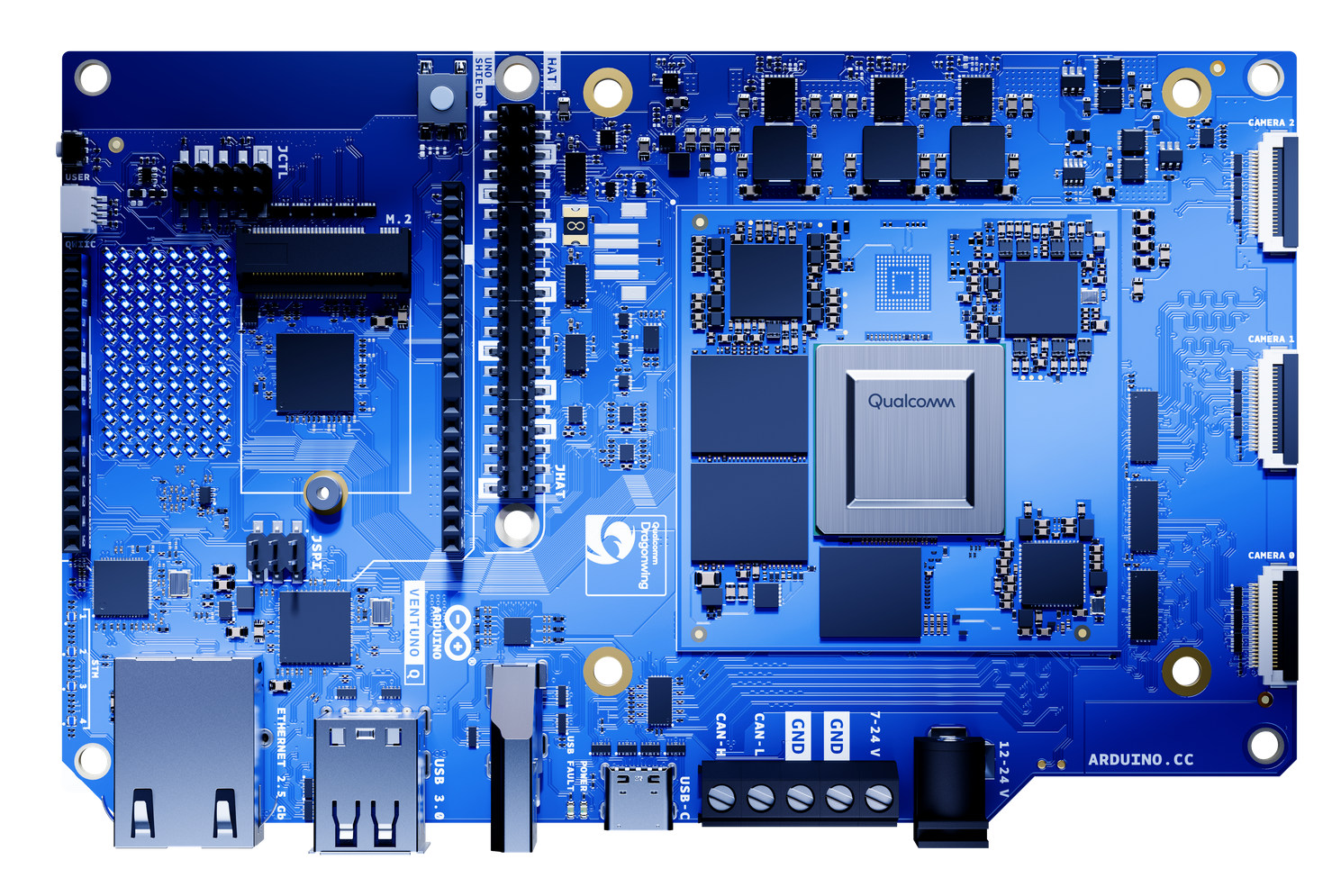 I knew the writing was on the wall as soon as I received my advanced prototype of the "Q"riously-named Arduino UNO Q: the Qualcomm acquisition was happening, and Arduino products would soon start reflecting it. The UNO Q is an impressive hybrid single-board computer, featuring a Qualcomm Dragonwing QRB2210 capable of running Linux, coupled with an STM32U585 microcontroller. This gives it the power and ease of use of a Raspberry Pi-type device, with the real-time accuracy and control of a "classic" Arduino. And the fact that you can plug a keyboard and monitor into this $44 machine and start developing without a separate computer makes it one of my favourite new boards from the past six months. I've been having fun with the 4GB version, but the thought "what if UNO Q, but more?" has certainly crossed my mind, and Arduino have answered that emphatically with the new VENTUNO Q.